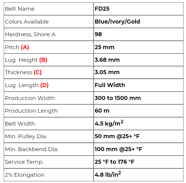 Product Selection > Food Grade Belting > Drivable Profile Belting > Full Drive Bar FD25
