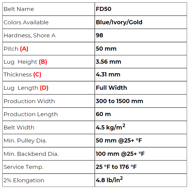 Product Selection > Food Grade Belting > Drivable Profile Belting > Full Drive Bar FD50